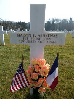 Pvt Marvin F. Ashkenas attended high school for two years and was a clerk when he volunteered for the Army of the United States in Newark, New Jersey on 29 June 1942.He was killed by artillery shell fragments.
