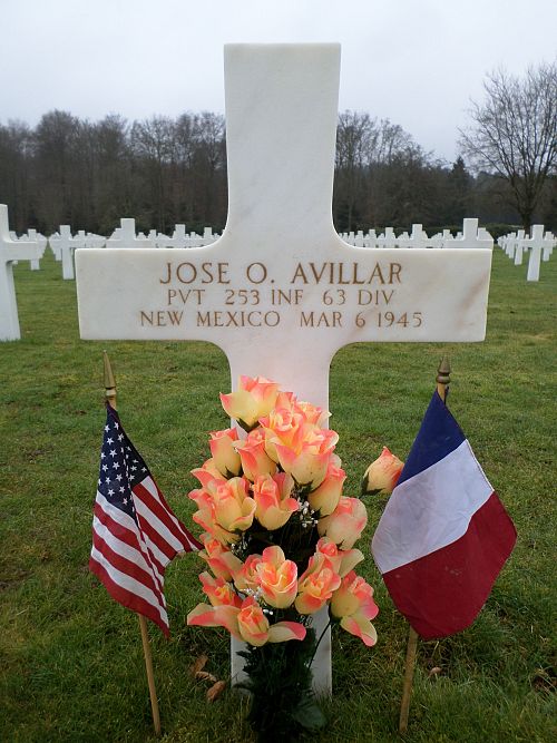 Source of information: Peter Schouteten, www.abmc.gov, www.wwiimemorial.com, www.archives.gov - WWII Enlistment Record, www.ancestry.com - Headstone and Interment Record / U.S. WWII Draft Cards Young Men / U.S. WWII Hospital Admission Card Files, www.63rdinfdiv.com, www.newspapers.com - Las Cruces Sun News New Mexico 23 March 1945