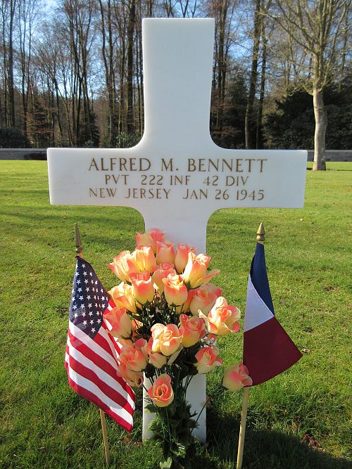 Pvt Alfred M. Bennett was employed at Millville Manufacturing Company.He enlisted at Fort Dix, New Jersey on 18 April 1944 and was sent overseas in November 1944.