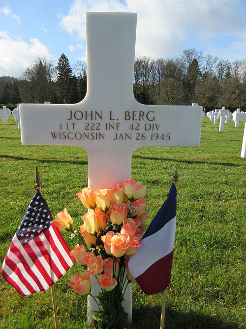 Volunteering to lead a rescue party across two hundred yards of open terrain to a wounded man who lay exposed to direct enemy observation, Lt Berg worked his way under heavy fire through the snow to the man's side. Placing the wounded man on a litter, the party returned across the open field, successfully evacuating the man under continual enemy fire. For this action, he was awarded the Silver Star Medal posthumously.