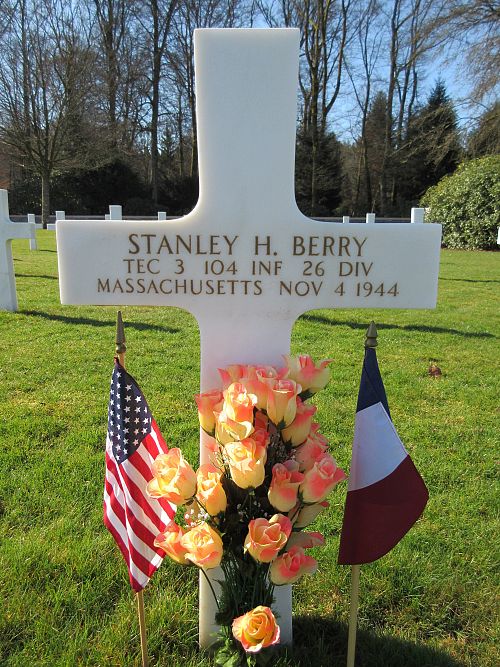T/3 Stanley H. Berry graduated from Goodwill High School in 1931. He was employed by Smith and Wesson.He enlisted in Springfield, Massachusetts on 19 September 1942 and was sent overseas on September 1944.