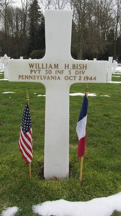 Pvt William H. Bish attended high school for four years and was a foreman, employed by the Hanley Brick Company.He enlisted in Altoona, Pennsylvania on 27 December 1943 and was sent overseas in July 1944.