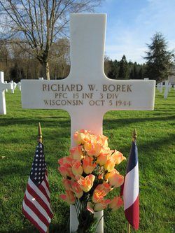 Pfc Richard W. Borek attended high school for two years and worked in a machine shop.He enlisted in Milwaukee, Wisconsin on 10 December 1942.
