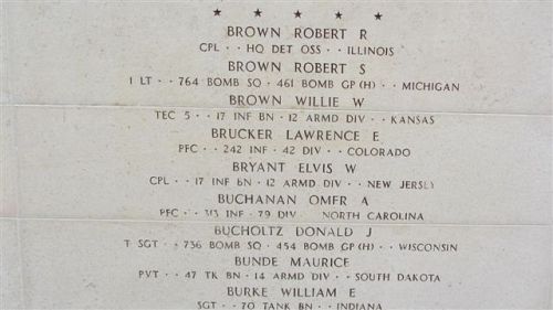 Pfc Lawrence E. Brucker attended high school for 2 years and was a clerk before he joined the Regular Army on 28 September 1940.He was officially declared death one year and one day after he went missing and was presumed death. At that time his unit was fighting in the vicinity of Hatten, France.