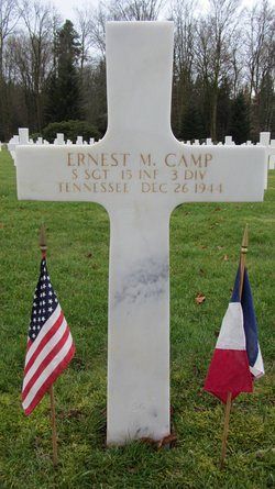 S/Sgt Ernest M. Camp attended high school for one year and worked on the family farm before he enlisted at Fort Oglethorpe, Georgia on 26 May 1943.Source of information: Leo Minne, www.abmc.gov, www.wwiimemorial.com, www.ancestry.com - 1930/1940 Census / Headstone and Interment Record / U.S. WWII Draft Cards Young Men / U.S. WWII Hospital Admission Cards, History 3rd Infantry Division WWII