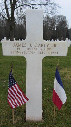 Pfc James J. Carty Jr. enlisted in Philadelphia, Pennsylvania on 26 September 1942. He was sent overseas on 29 June 1944.Source of information: Leo Minne, www.abmc.gov, www.wwiimemorial.com, www.ancestry.com – 1930/1940 Census / Headstone and Interment Record / Pennsylvania Veteran Compensation Application, www.80thdivision.com