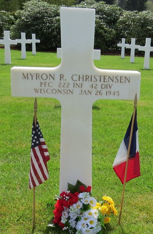 Pfc Myron R. Christensen graduated from Central High School and attended the University of Wisconsin.He enlisted on 5 February 1943 and was sent overseas on 10 December 1944.