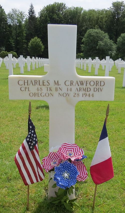 Cpl Charles M. Crawford graduated from Roosevelt High School and was employed at the Western Cooperage Company.He enlisted in Portland, Oregon on 3 December 1942. He wassent overseas in early November, 1944.