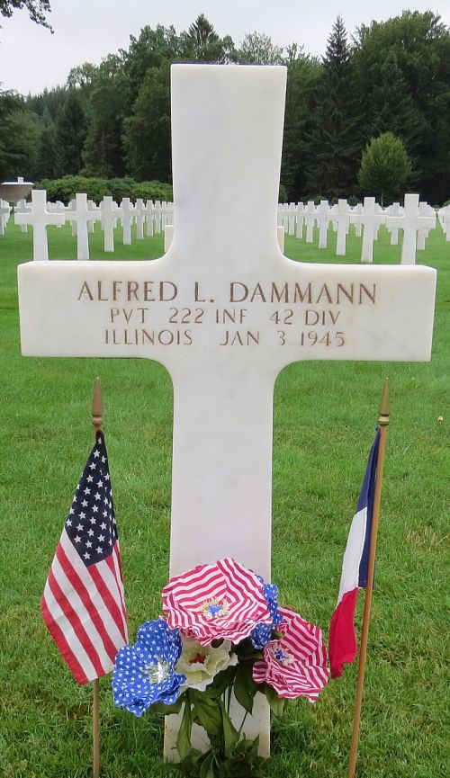 Pvt Alfred L. Dammann enlisted in April, 1944 and had been overseas since December,1944.Source of information: Peter Schouteten, www.abmc.gov, www.wwiimemorial.com, www.ancestry.com - Headstone and Interment Record / U.S. Social Security Application and Claims Index, www.findagrave.com, www.newspapers.com – Freeport Journal Standard Illinois 24 January 1945