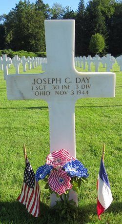 1st Sgt Joseph C. Day attended college for two years and was employed at the Frick - Reid Supply Corp. before he joined the Regular Army on 5 September 1939.He was killed by artillery shell fragments in the abdomen.