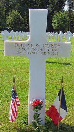 S/Sgt Eugene W. Dority attended high school for four years and was a flagman when he entered the service in 1932. He served three and a half years with the U.S. Marines in China. He then joined the National Guard, and in March 1941, went into the regular Army. He served in Hawaii for nine months in 1942.In December 1944 he was sent overseas to a replacement battalion in France which he left by the end of January 1945.