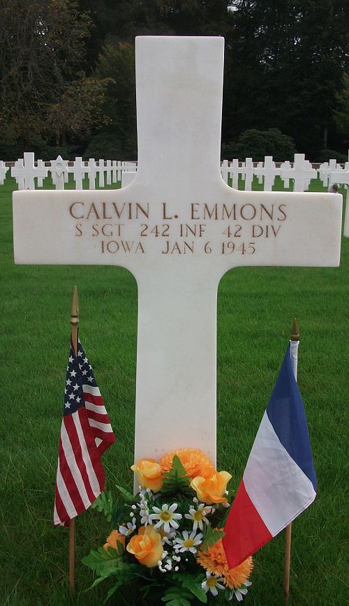 S/Sgt Calvin L. Emmons enlisted at Camp Dodge, Des Moines, Iowa on 22 August 1942.Source of information: Peter Schouteten, www.abmc.gov, www.wwiimemorial.com, www.ancestry.com - Headstone and Interment Record / Iowa WWII Bonus Case Files / Newton Thornburg Lewellen Family Tree / 1930 Census, www.findagrave.com