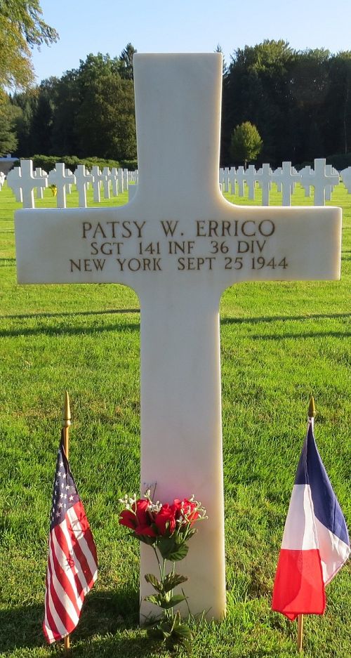 Sgt Patsy W. Errico was a sales clerk before he enlisted in New York City, New York on 11 November 1942.Source of information: André Koch, www.abmc.gov, www.wwiimemorial.com, www.archives.gov - WWII Enlistment Record, www.ancestry.com - Headstone and Interment Record / U.S. WWII Draft Cards Young Men 1940-1947 / 141aar-June-to-September-1944.pdf, https://36th-id.frb.io