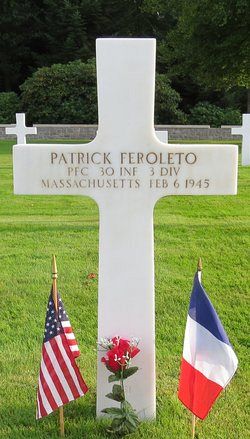 Pfc Patrick Feroleto was employed by the Nood Rubber Co.He enlisted in Boston, Massachusetts on 17 November 1943.