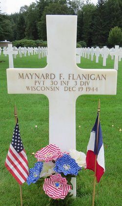 Pvt Maynard F. Flanigan graduated from East High School despite being in the Army when graduation ceremonies took place. Shortly after his mother died, he lived with his foster parents - his aunt and uncle - in Allouez, Wisconsin.He died of grievous shell wounds to the head at the 51st Evacuation Hospital in St. Die.