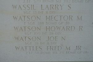 T/Sgt Watson is remembered at the Swampscott Cemetery in Swampscott, Essex County, Massachusetts