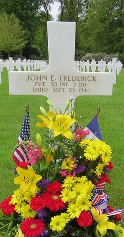 Pvt John E. Frederick attended Bellevue High School and was a college student before he enlisted in Toledo, Ohio on 23 December 1943.He was killed by small arms fire in the abdomen.