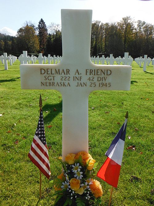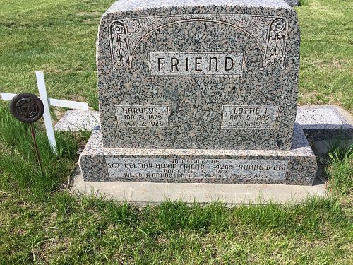 Sgt Delmar A. Friend is also remembered at the Ord Cemetery in Ord, Valley County, Nebraska.Source of information: Peter Schouteten, www.abmc.gov, www.wwiimemorial.com - Clarence E. Graves Jr., www.ancestry.com - Headstone and Interment Record / Kavalec Family Tree, www.findagrave.com - Loren Bender / Kathy Burgess Burr