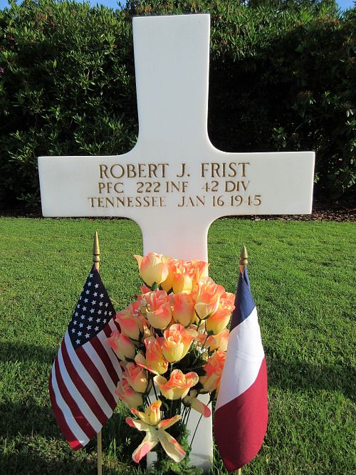 Pfc Robert J. Frist attended high school for two years and was a crane man before he enlisted at Fort Oglethorpe, Georgia on 18 May 1943.Source of information: Peter Schouteten, www.abmc.gov, www.wwiimemorial.com, www.archives.gov - WWII Enlistment Record, www.ancestry.com - Headstone and Interment Record / Wilson Clowdus Family Tree, www.findagrave.com