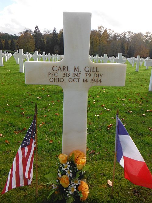 Pfc Carl M. Gill attended high school for four years before he enlisted in Pittsburgh, Pennsylvania on 11 August 1943.He was killed by artillery shell fragments in his leg.