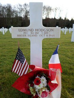 Pfc Edmund Hodgson was a starcher, employed by the Greenwich Bleachery.He enlisted in Providence, Rhode Island on 30 November 1942.