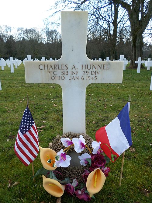 Pfc Charles A. Hunnel was employed at the Excelsior Salt Company at Pomeroy before he enlisted.Source of information: Peter Schouteten, www.abmc.gov, www.wwiimemorial.com, www.ancestry.com - Headstone and Interment Record / U.S. WWII Draft Cards Young Men / Ehrenberg Watts Tree / Hunnel Geary Fox Smith Family Tree / 1930 Census, Combat History 79th Infantry Division
