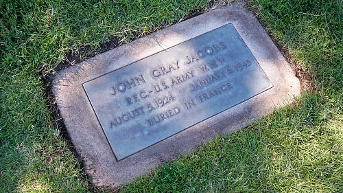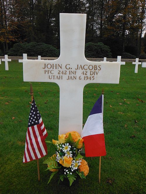 Pfc John G. Jacobs attended high school for four years and was a stenographer and typist before he enlisted in Salt Lake City, Utah, on 11 June 1943.He was taken prisoner of war on 6 January 1945 in France and was killed on the same day. The exact circumstances are unknown.