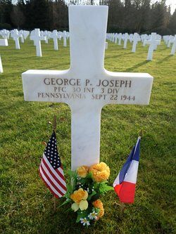 Pfc George P. Joseph arrived in the U.S. on 17 February 1938 was naturalized on 11 December 1941.He was employed at the Chesnut Cafetaria in Philadelphia before he enlisted on 16 February 1942.