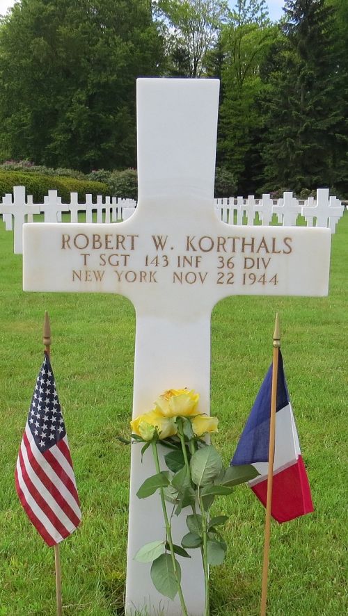 T/Sgt Robert W. Korthals joined the Regular Army on 17 March 1939.Source of information: André Koch, www.abmc.gov, www.wwiimemorial.com, www.archives.gov – WWII Enlistment Record, www.ancestry.com - 1930/1940 Census / Headstone and Interment Records / U.S. WWII Draft Cards Young Men, https://36th-id.frb.io, 143rd-October-1944-to-end.pdf