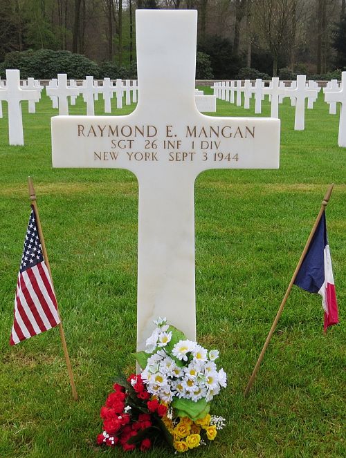 Sgt Raymond E. Mangan attended high school for 1 year and was a policeman before he enlisted in New York City, New York on 17 February 1943.He was first buried at the Temporary American Military Cemetery in Solers, France.
