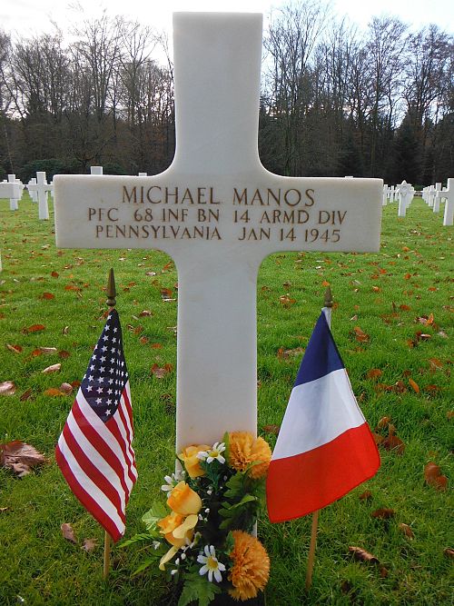 Pfc Michael Manos attended college for three years before he enlisted in Pittsburgh, Pennsylvania on 11 November 1942.Source of information: Peter Schouteten, www.abmc.gov, www.wwiimemorial.com, www.archives.gov - WWII Enlistment Record, www.ancestry.com - U.S. WWII Draft Cards Young Men / 1930 Census, http://14thad.org