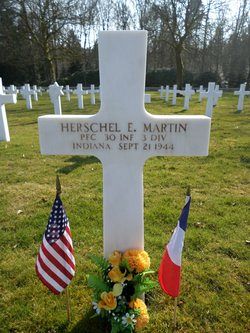 Pfc Herschel E. Martin was employed by the National Youth Administration in Oblong, Illinois before he enlisted on 19 July 1943.He was killed by artillery shell fragments in the side and back of his body.