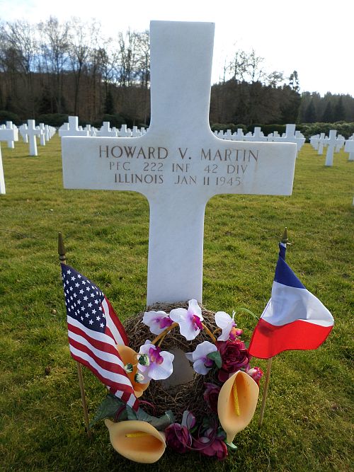 Pfc Howard V. Martin attended high school for 1 year before he enlisted in Peoria, Illinois on 23 September 1942. He was sent overseas in November 1944.Source of information: Peter Schouteten, www.abmc.gov, www.wwiimemorial.com, www.archives.gov – WWII Enlistment Record, www.ancestry.com - Headstone and Interment Record / 1940 Census, www.findagrave.com, www.newspapers.com – The Decatur Herald Illinois 9 February 1945