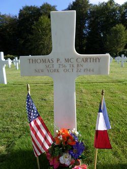 Sgt Thomas P. McCarthy was a longshoreman before he joined the Regular Army at Fort Dix, New Jersey on 4 September 1941.Source of information: Leo Minne, www.abmc.gov, www.wwiimemorial.com, www.ancestry.com - 1930/1940 - Census / U.S. Headstone and Interment Record for U.S. Military Cemeteries on Foreign Soil / U.S. Draft Cards Young Men / U.S. WW2 Hospital Admission Cards