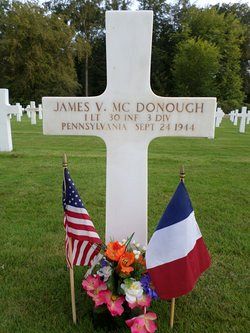 1st Lt James V. McDonough attended Edwardsville High School and worked in the machine shop of Ray Young in Bridgeport, Connecticut.He volunteered for the Army of the United States in Wilkes Barre, Pennsylvania enlisted on 16 February 1942. He was sent overseas in January 1944.