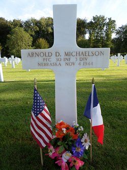 Pfc Arnold D. Michaelson enlisted on 1 July 1941.He was killed by artillery shell fragments.