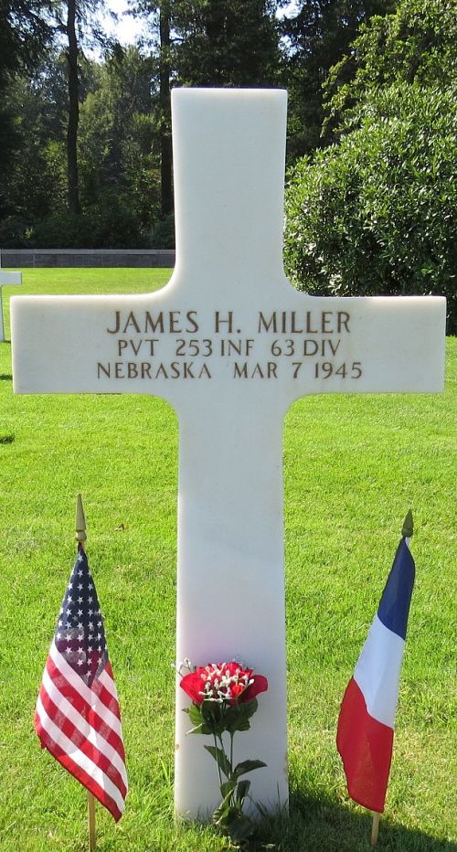 Pvt James H. Miller attended high school for four years and was a toll taker at the Toll Bridge before he enlisted at Fort Leavenworth, Kansas on 26 July 1944. He was sent overseas in January 1945.He died in a field hospital to the effects of a gunshot to his intestines.