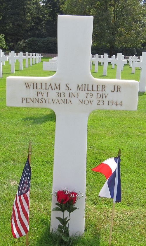 Pvt William S. Miller Jr. attended high school for two years and was employed at the Lloyds Potato Chip Factory before he enlisted in New Cumberland, Pennsylvania on 28 March 1944.He was killed by artillery shell fragments.