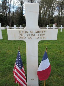Pfc John M. Miney was unemployed before he enlisted at Camp Perry, Ohio on 13 March 1943.From May 1944 until June 1944, he was hospitalized in Italy for wounds in the neck, caused by artillery shell fragments.