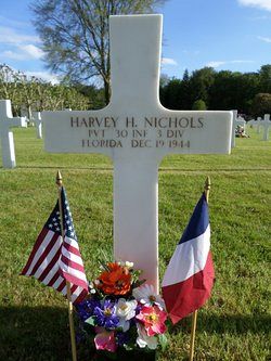 Pvt Harvey H. Nichols attended high school for four years and was a chauffeur, employed by the Farm Security Administration.He enlisted at Fort McPherson, Atlanta, Georgia on 24 April 1944.