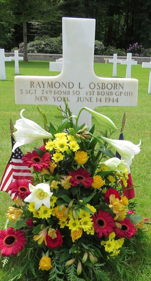 S/Sgt Raymond L. Osborn was employed at the West Virginia Pulp and Paper Company before he volunteered for the Army of the United States in Albany, New York on 17 October 1942.The B-17 was damaged by fighters on the bomb run and then received a direct hit from flak in the cockpit and radio room. At about 0840hrs the aircraft exploded in mid-air at 12,000 feet and crashed 1,000 yards north of Chapdeuil, southeast of Paris.