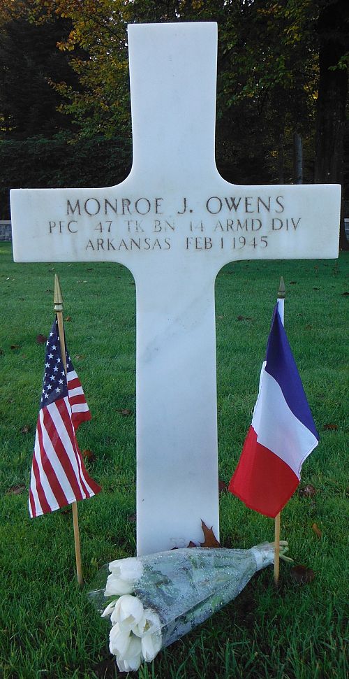 Pfc Monroe J. Owens worked on a farm before he enlisted in Little Rock, Arkansas on 8 July 1942.Source of information: Peter Schouteten, www.abmc.gov, www.wwiimemorial.com, www.archives.gov - WWII Enlistment Record, www.ancestry.com - Headstone and Interment Record / Albano Family Tree, www.findagrave.com, http://14thad.org