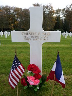 Pfc Chester E. Parr attended high school for one year and was employed at Fairmont Tool & Forge Company.He enlisted in Cleveland, Ohio on 24 April 1943 and was sent overseas in November, 1943.