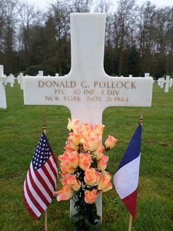 Pfc Donald C. Pollock grew up in the National Orphans Home in Wyandot County, Ohio after the death of his parents.He was unemployed when he enlisted in New York City, New York on 8 March 1943.