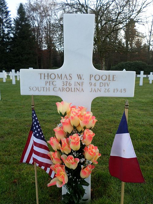 Pfc Thomas W. Poole worked on a farm before he enlisted at Fort Jackson, South Carolina on 2 December 1942.He was first buried at the Temporary American Military Cemetery in Solers, France.