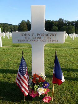 Pfc John G. Poraczky attended Johnstown Catholic High School and was a utility man employed by the Coney Island Restaurant.He enlisted at Camp Wheeler, Georgia on 14 October 1943.