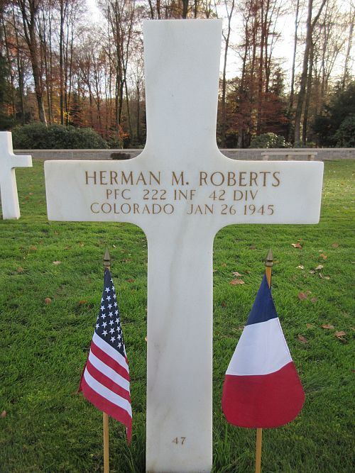 Pfc Herman M. Roberts attended high school for two years and was a driver before he enlisted in Denver, Colorado on 11 September 1943.Source of information: Peter Schouteten, www.abmc.gov, www.wwiimemorial.com, www.archives.gov - WWII Enlistment Record, www.ancestry.com - Headstone and Interment Record / Colorado Steelworks Employment Records / 1930 Census / Seme Family Tree, www.findagrave.com