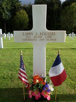 Pfc Larry J. Roussel was a farmer before he enlisted in New Orleans, Louisiana on 7 September 1942.He was killed by small arms fire in the head.