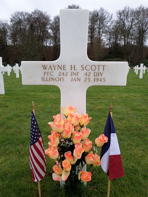 Pfc Wayne H. Scott attended high school for four years before he joined the Army in Chicago, Illinois on 10 June 1943.He was awarded the Silver Star Medal posthumously. The citation cited: