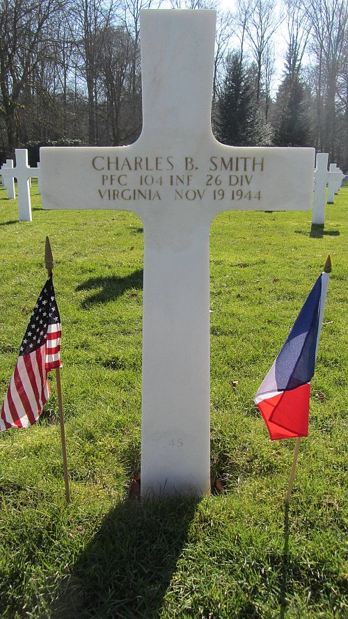 Pfc Charles B. Smith was employed at the B. T. Pitts, Bowling Alley before he enlisted in Richmond, Virginia on 4 March 1943.Source of information: Peter Schouteten, www.abmc.gov, www.wwiimemorial.com, www.archives.gov - WWII Enlistment Record, www.ancestry.com - Headstone and Interment Record / Myers Cook Family / U.S. WWII Draft Cards Young Men, www.findagrave.com, After Action Report 26th Infantry